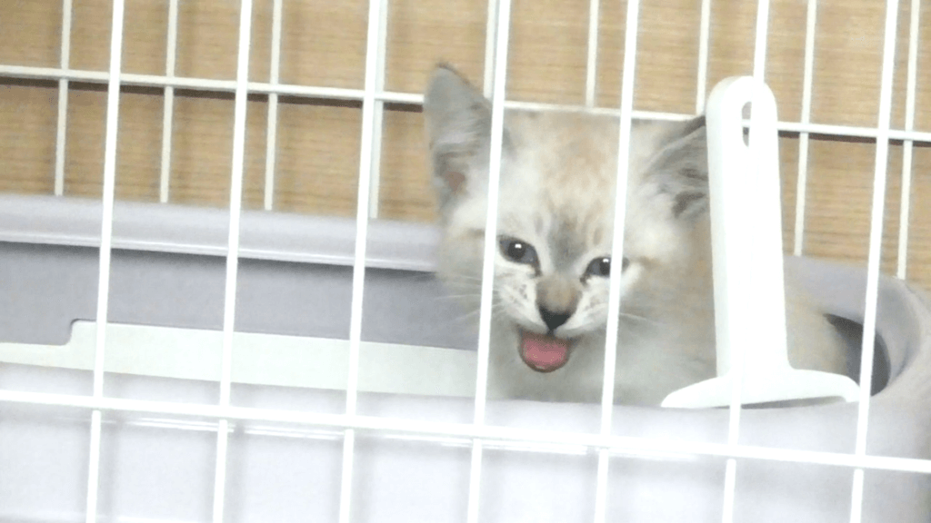 入居初日のデュフィはまずケージに入れています(前回の記事→かわいい顔を見せつけたあとガン切れする子猫【YouTuberとしての目覚め?】 の続きです)。