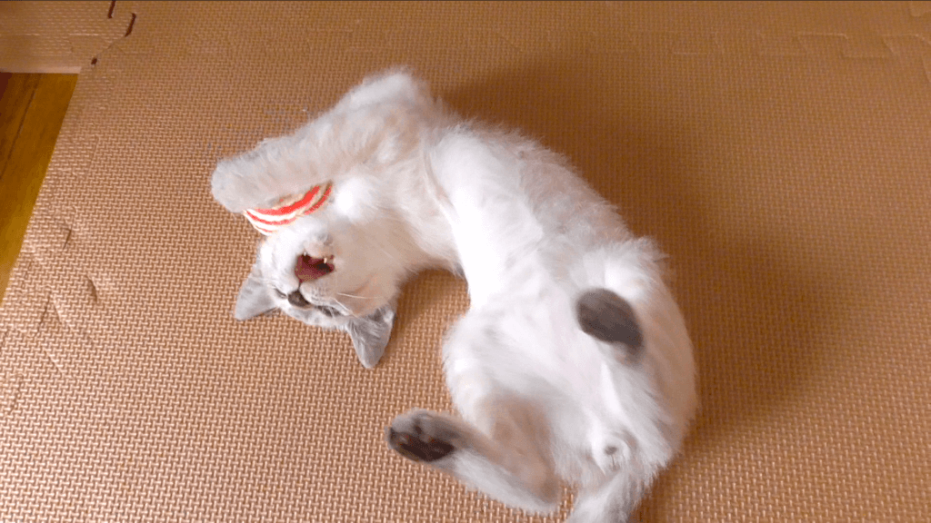 日を改めてもう一度麻縄ボールで遊んでみました。すると…