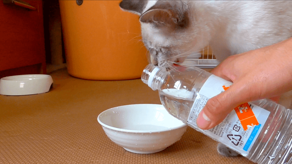 どうやら直接ペットボトルから飲みたいみたい。