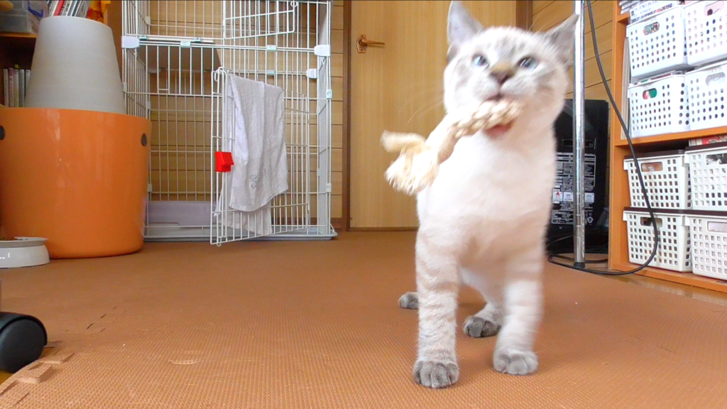 (初日の様子はこちら→子猫が投げたおもちゃを持ってくる姿がまるで犬【持ってこい特訓初日】)