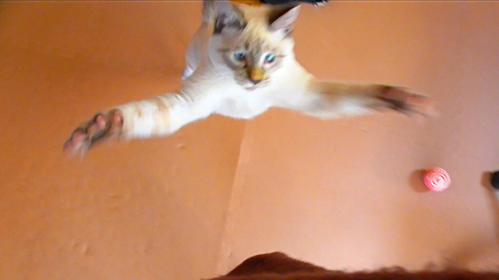 ヒラヒラと揺れる布に飛びかかるのが楽しいみたいです。